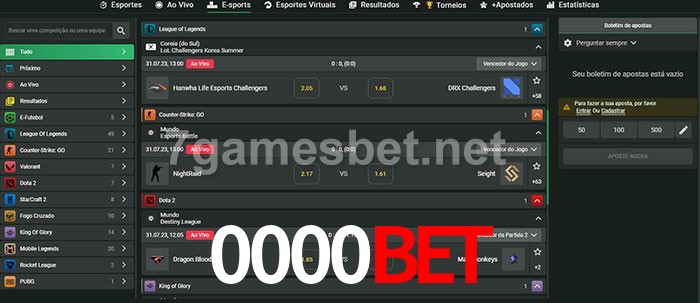 O 0000bet oferece uma grande seleção de opções de apostas em e-sports com probabilidades competitivas